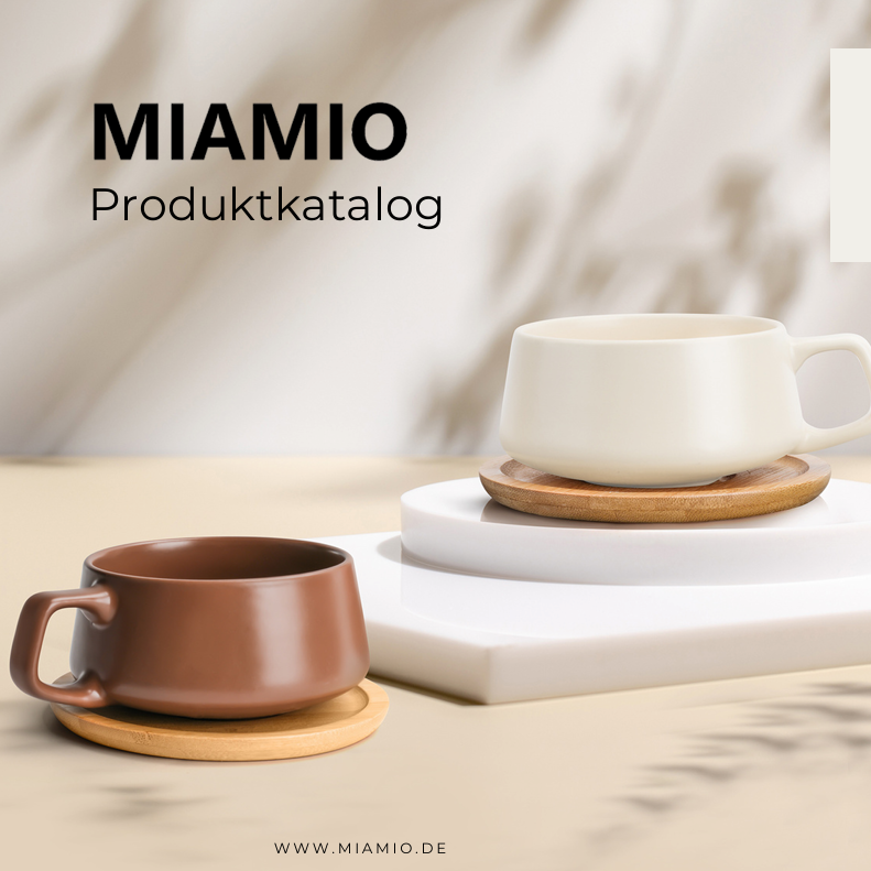Der MIAMIO Produktkatalog bietet eine breite Auswahl an Tassen- und Geschirrsets für alle Anlässe. Im Katalog sind alle relevanten Daten zu den einzelnen Artikeln und Produktfamilien enthalten.
