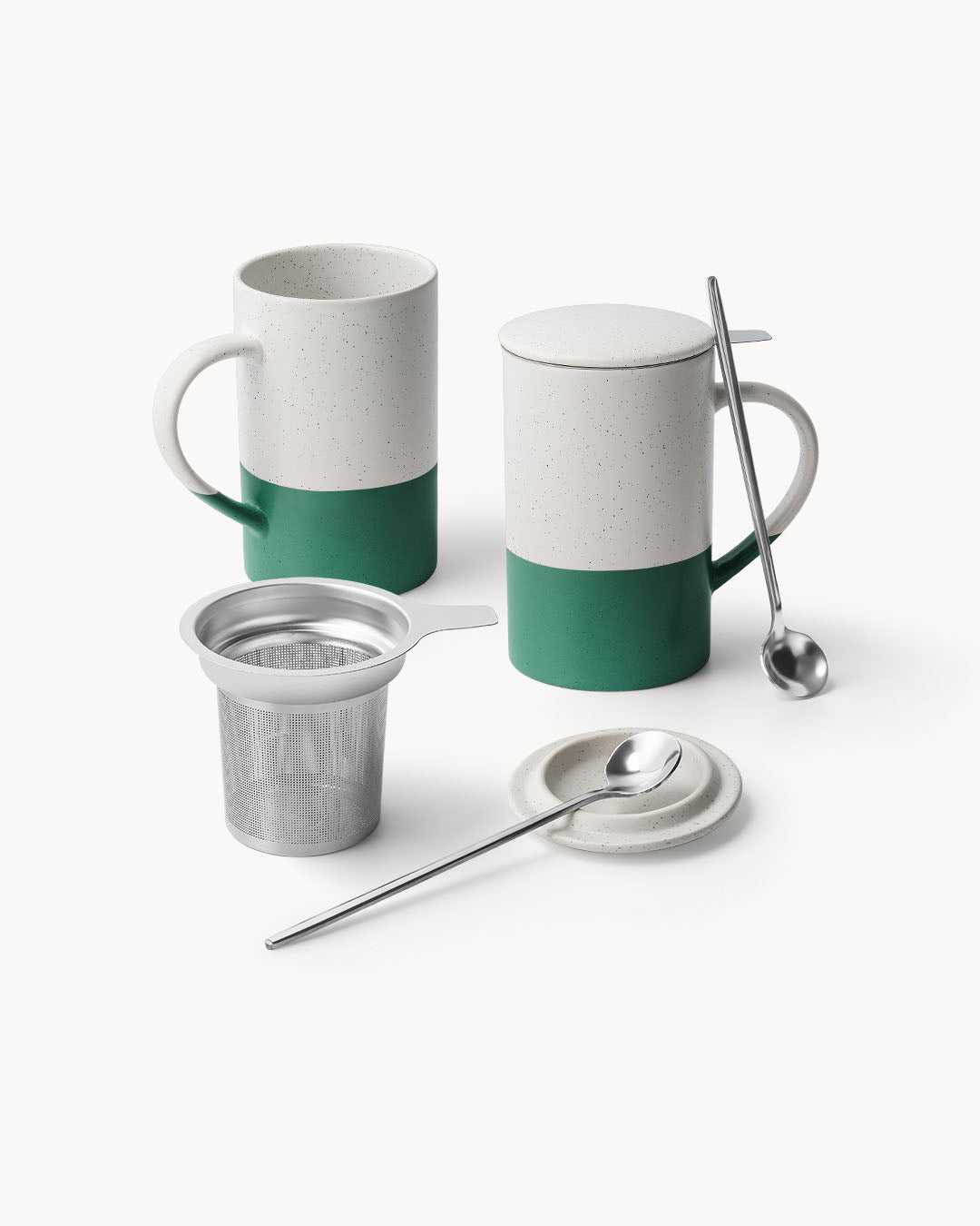 Teetassen Set mit Siebeinsatz und Deckel 2er Set 500 ml -