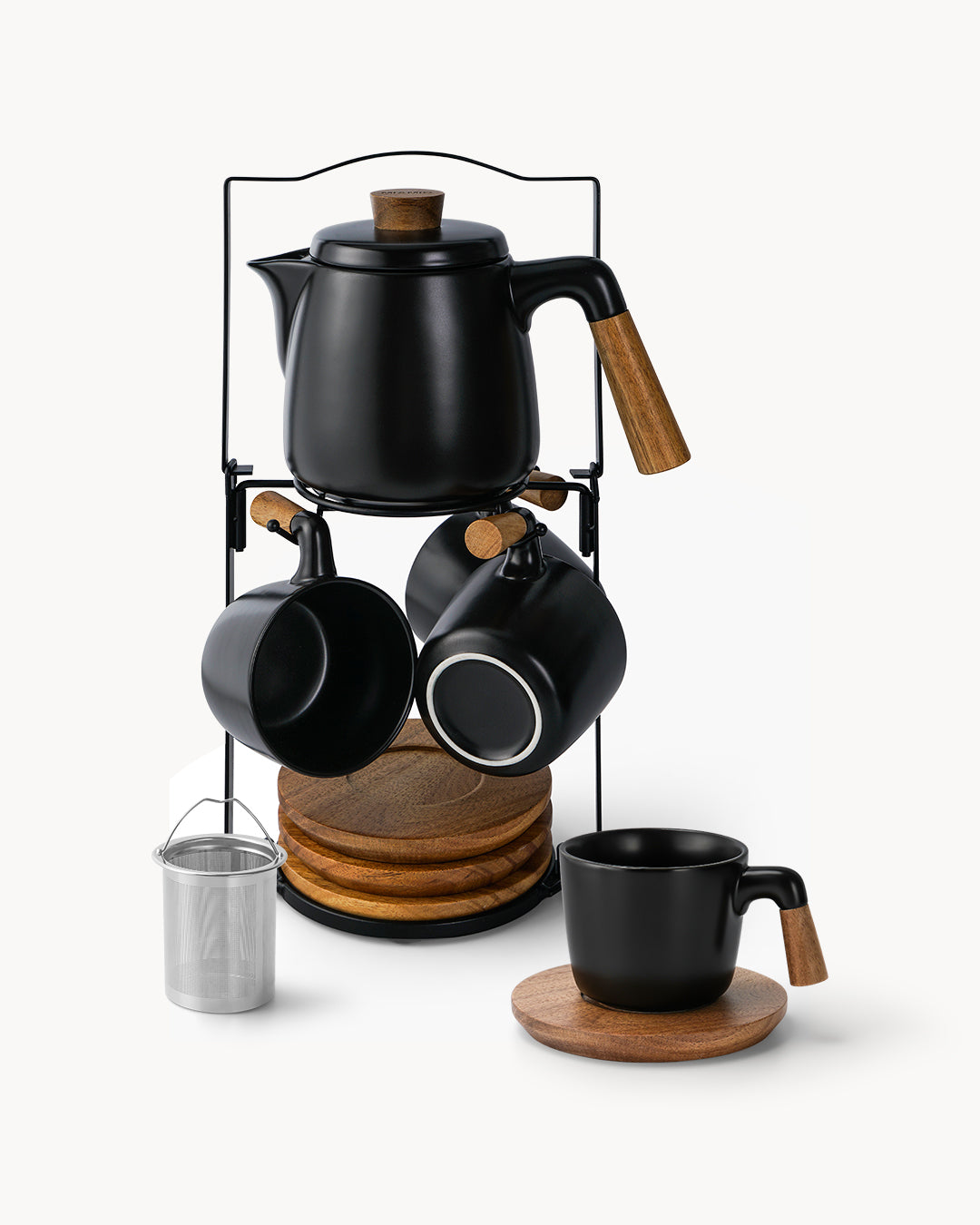 Teekannen Set mit Gestell und 4 Tassen für 4 Personen 1000ml -