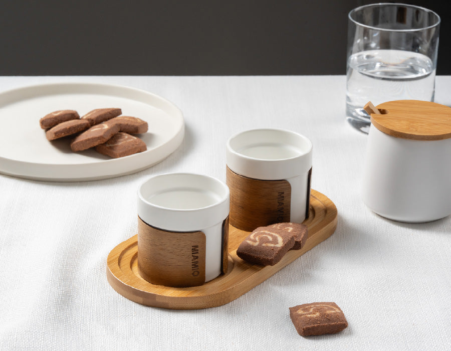 Dieses Bundle kombiniert zwei unterschiedliche Kollektionen zu einem stimmigen Kaffee-Set: vier Espressotassen mit Holzmanschette und vier Cappuccinotassen aus der Luxe Kollektion. Der Mix aus warmem Akazienholz und der eleganten Luxe-Ästhetik wirkt besonders harmonisch bringt Abwechslung in die Kaffeeroutine.