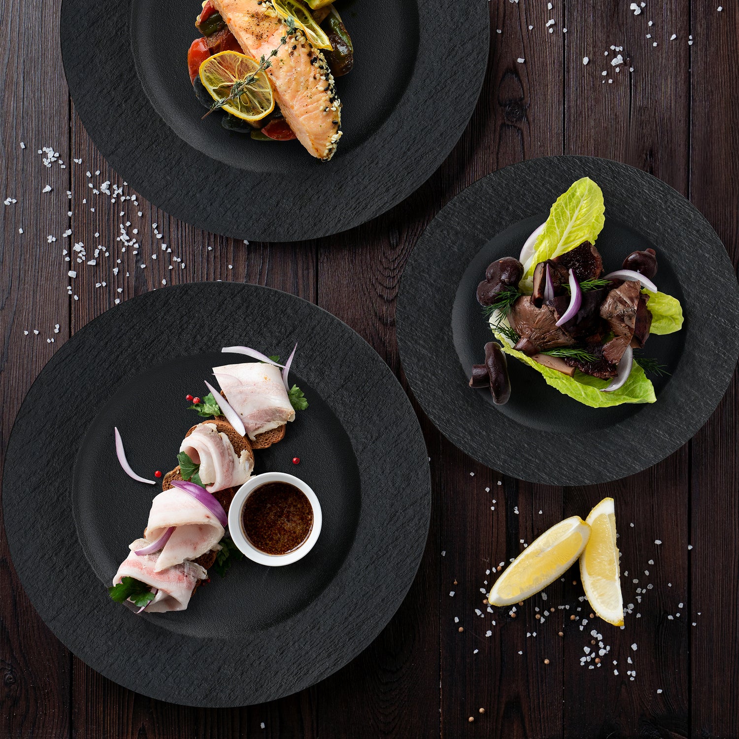 Die Oasis-Kollektion verkörpert zeitlose Eleganz und praktische Raffinesse für deinen Essbereich. Stilvolle Kaffeetassen, elegante Schüsseln und raffinierte Teller präsentieren sich in einem ansprechenden matten Schwarz- oder Weißton mit Schieferoptik. Diese Kollektion vereint Funktionalität und Ästhetik, um deinem Tisch einen Hauch von zeitloser Eleganz zu verleihen.