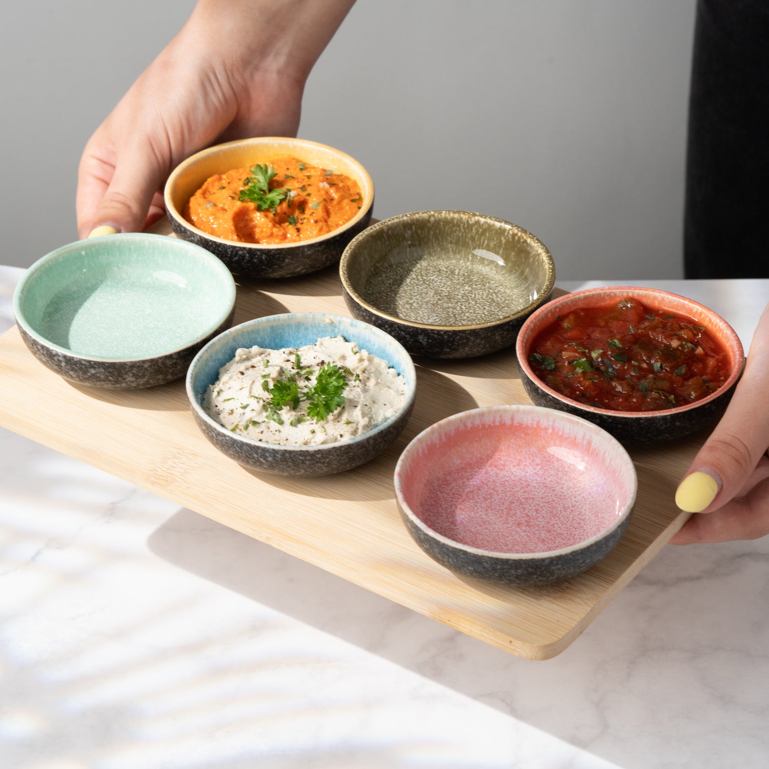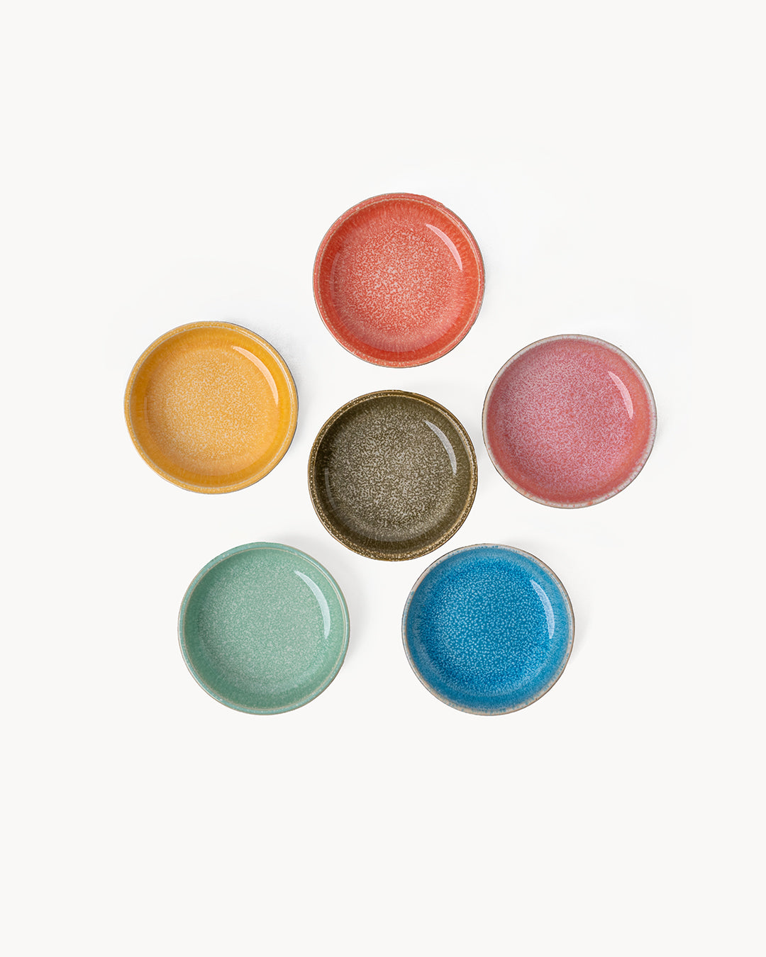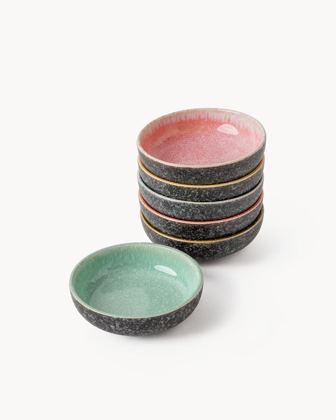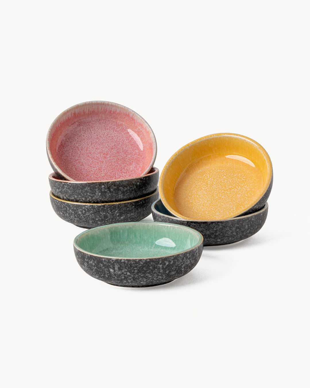 Das 6-teilige Dip Bowl-Set aus der beliebten Las Palmitas Kollektion bringt frische Farben und funktionales Design auf deinen Tisch. Die kleine, handliche Größe mit einem Fassungsvermögen von 85 ml eignet sich perfekt für Dips, Saucen, Snacks und kleine Appetizer. Mit sechs leuchtend farbenfrohen Innenflächen, die von einem eleganten, matten Außenfinish begleitet werden, ist jedes Dip Bowl ein echtes Highlight.