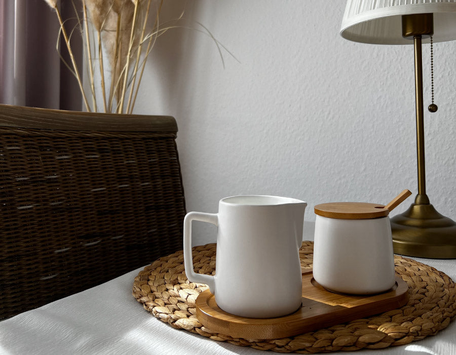 Milch und Zucker Set mit Deckel, Löffel & Milchkännchen