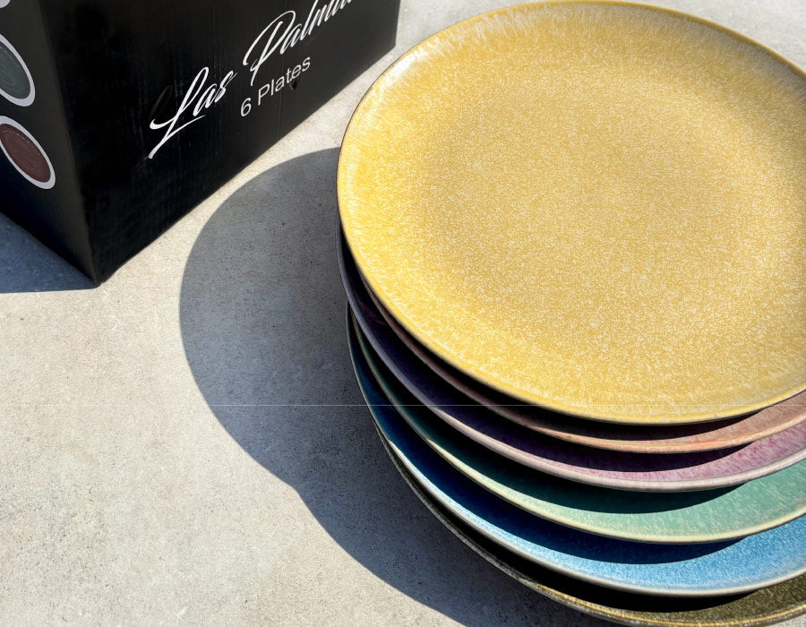 Die Las Palmitas Teller (6-teilig) bringen Farbe und Lebensfreude auf den Tisch. Die Kombination aus sanft matter Außenseite und sechs leuchtenden Farben im Inneren macht jeden Teller zu einem kleinen Highlight auf dem Tisch. Gefertigt aus hochwertigem Steinzeug, spülmaschinen- und mikrowellengeeignet – pflegeleicht im Alltag und passend zur Las Palmitas Kollektion mit Tassen und Schüsseln.
